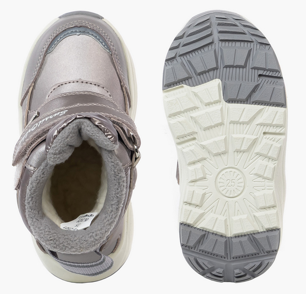 Зимние утепленные ботинки подходят для долгих и активных прогулок в холодную погоду. Формоустойчивый задник фиксирует пятку и формирует правильную биомеханику шага. Внутренняя подкладка с шерстью согревает и сохраняет тепло внутри. Съемная анатомическая стелька также с покрытием из шерсти усиливает ощущение комфорта в морозную погоду. Верх модели изготовлен из искусственной кожи и текстиля с мембраной SURSIL TEX, обеспечивает циркуляцию воздуха и обладает водоотталкивающими свойствами. Липучки велкро удобны для надевания и фиксации обуви ребенком. Гибкая и пористая подошва ЭВА не утяжеляет обувь, резиновый протектор сохраняет устойчивость походки без скольжения.